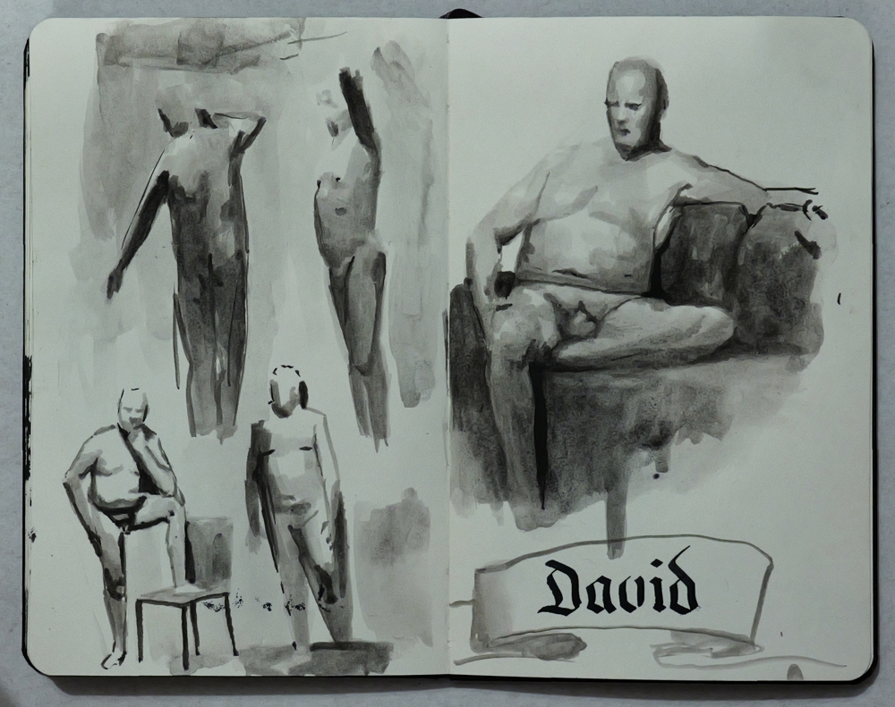5, 15 and 30 minute poses, ink and water brushpens on paper